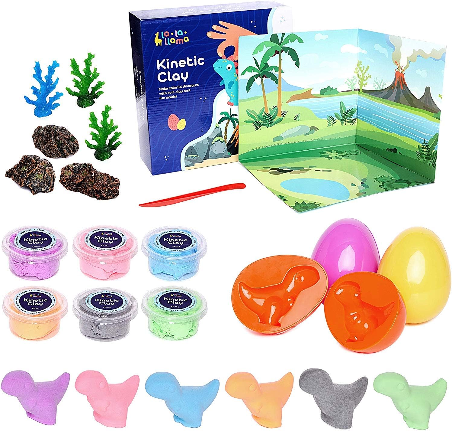 - NO MESS SENSORY TOYS – La-la-llama kinetic clay for kids is a non-drying clay which makes little or no mess. Toddlers will love to stretch it, squeeze it, squash it, and appreciate the fluffy texture while older children will enjoy making dinosaurs and other shapes, as well as mixing the 6 bright colors.